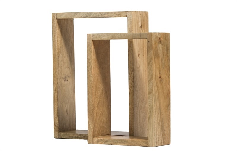 זוג מדפי עץ קוביה (קטן גובה 33 רוחב 22 גדול גובה 40 רוחב 30 )