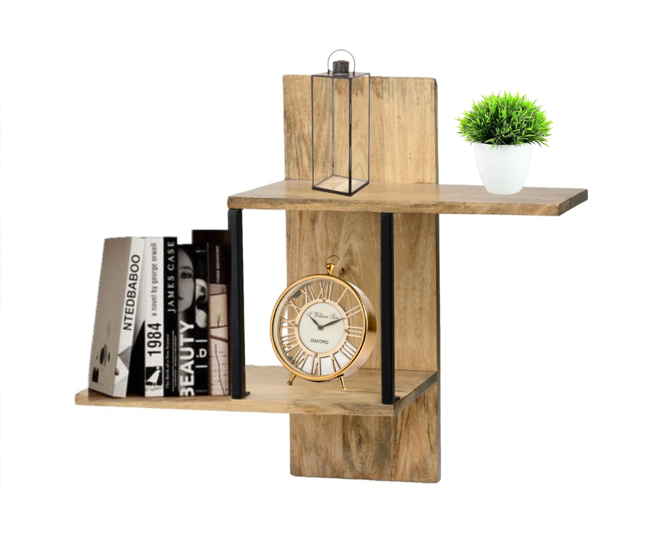 מדף ברזל+עץ כפול עומד שחור (35/40 )