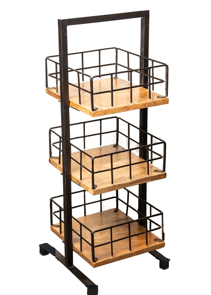 מדף ברזל+עץ כפול עומד שחור (35/40 )