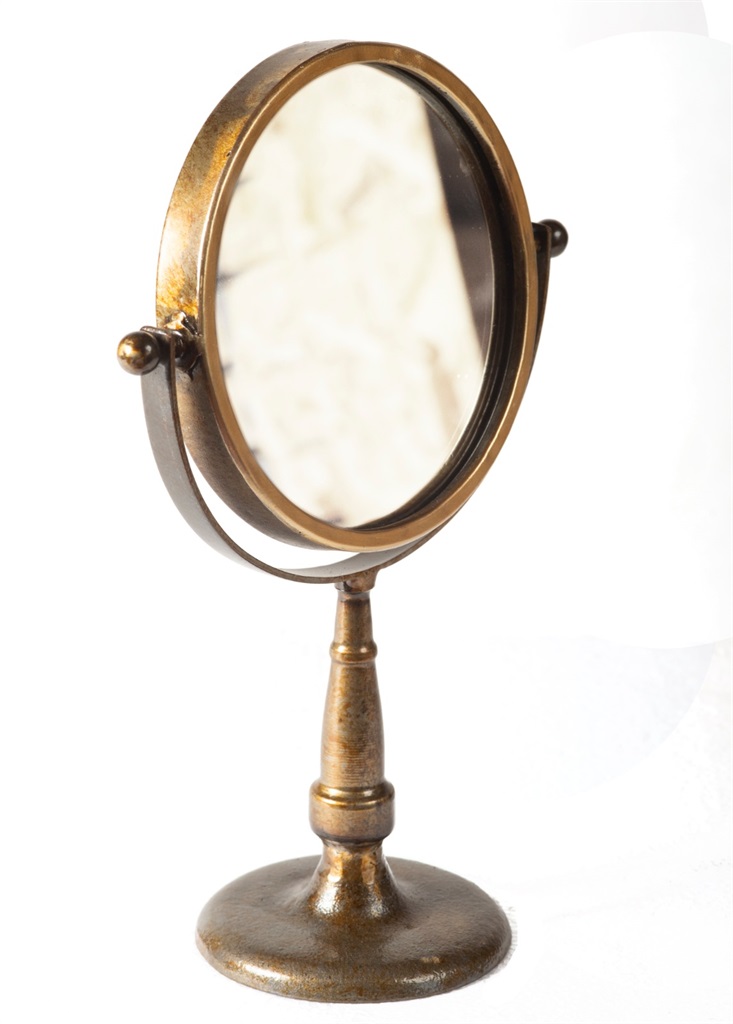 מראה שולחנית עגולה (גובה 35 קוטר 21 )
