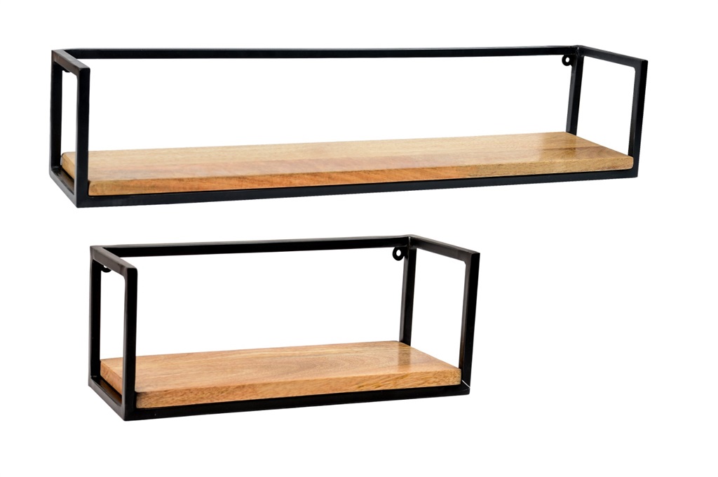 מדף ברזל+עץ כפול עומד שחור (35/40 )